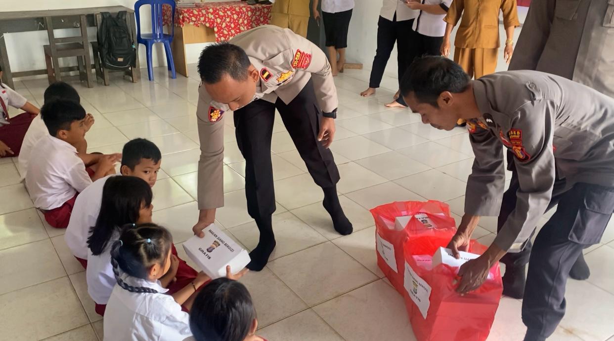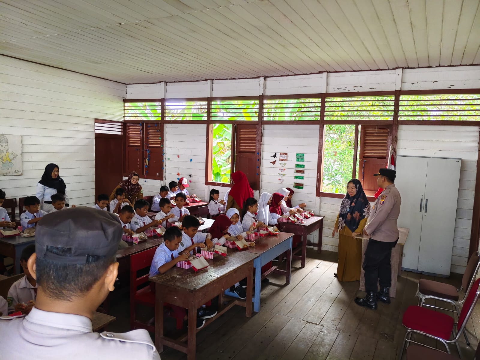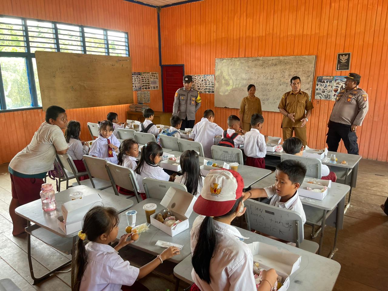 Polsek Bongan Dukung Program Makan Siang Bergizi Gratis di SDN 010 Kampung Lempunah