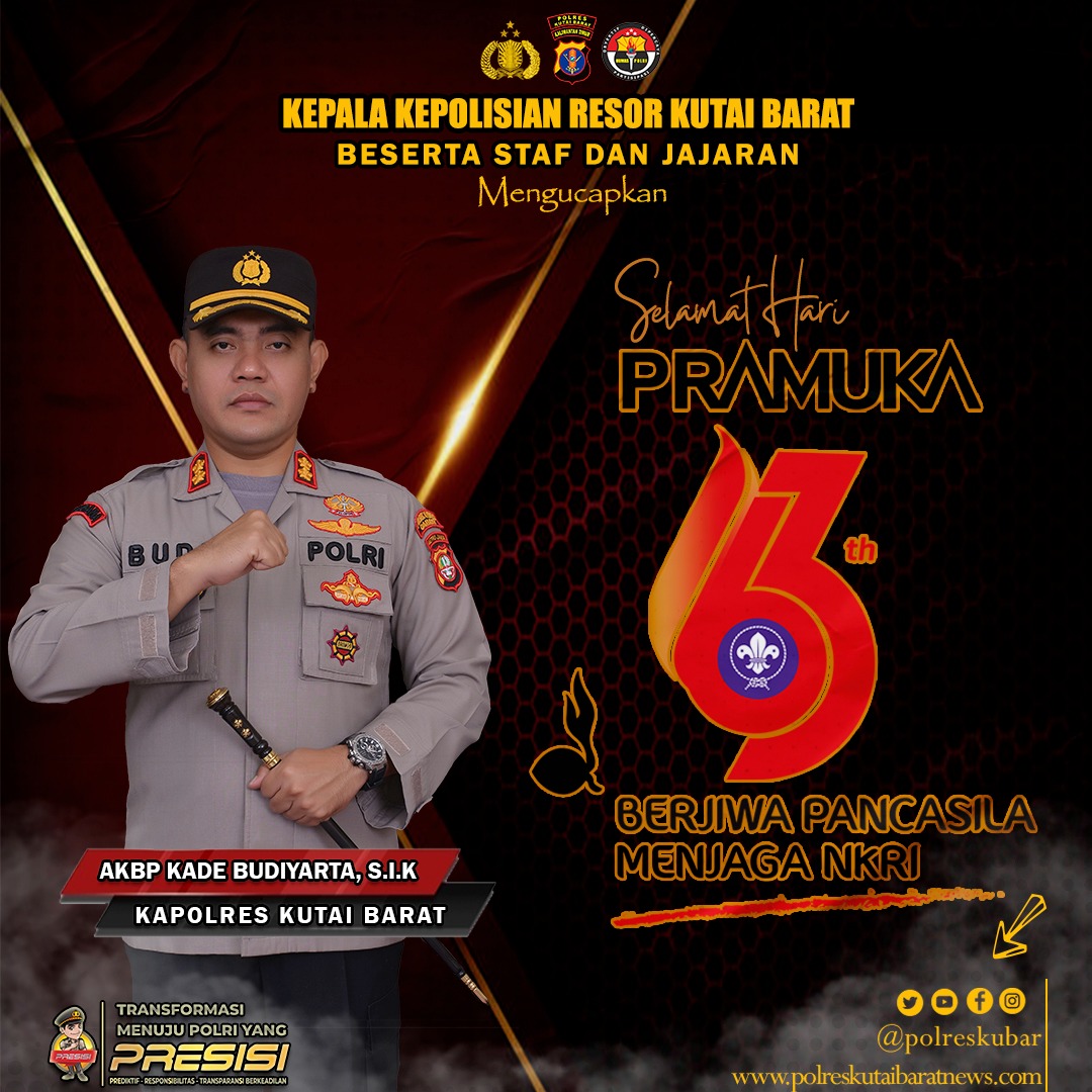 Kepala Kepolisian Resor Kutai Barat beserta Staf dan Bhayangkari Mengucapkan Selamat Hari Pramuka " Pramuka Berjiwa Pancasila Menjaga NKRI