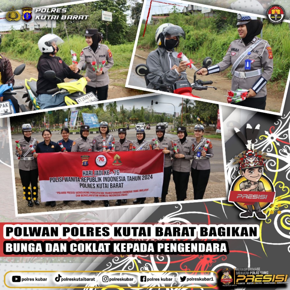 Polwan Polres Kutai Barat Bagikan Bunga dan Coklat kepada Pengendara