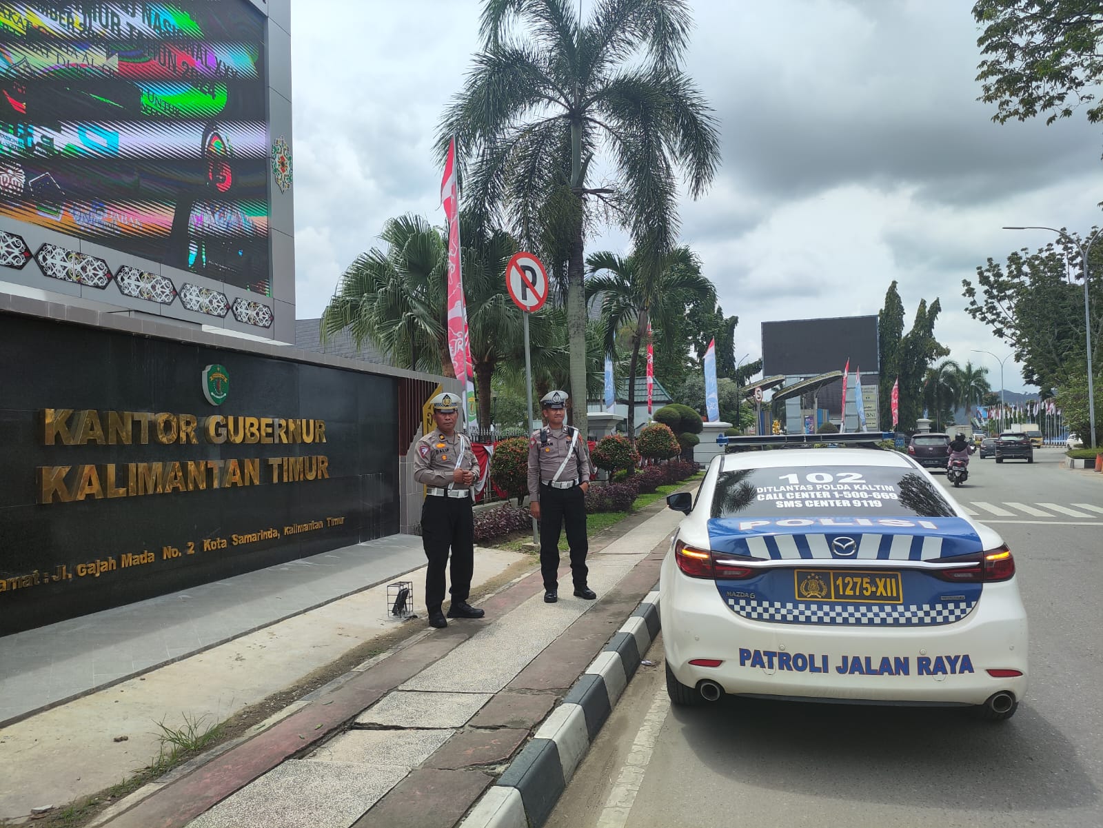 Jaga Keamanan Kantor Gubernur Kaltim, Patroli Ditlantas Polda Kaltim Pantau Sitkamtibmas