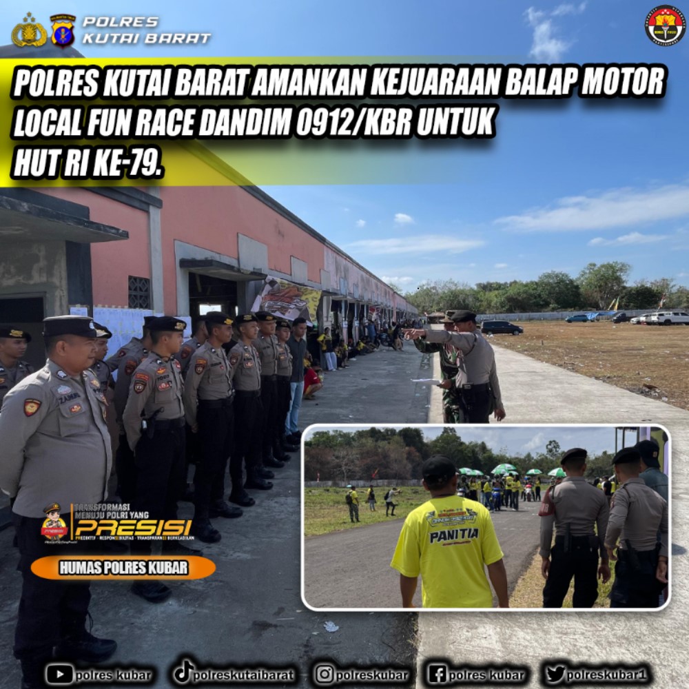 Polres Kutai Barat Berikan Pengamanan Kejuaraan Balap Motor Local Fun Race Dandim 0912/KBR dalam Rangka Memperingati HUT RI Ke - 79