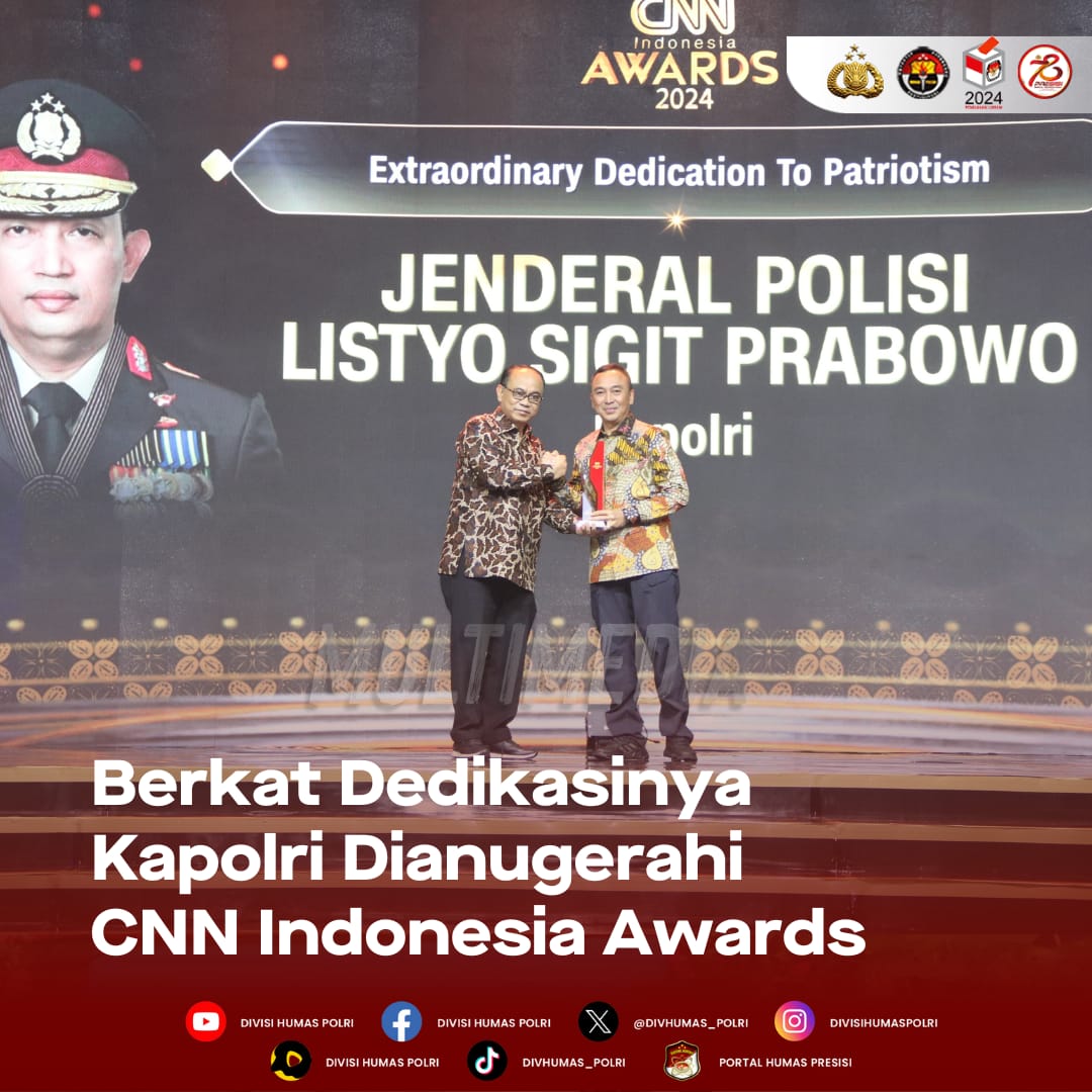Kapolri Jenderal Polisi Drs. Listyo Sigit Prabowo, M.Si., menerima penghargaan dalam CNN Indonesia Awards 2024