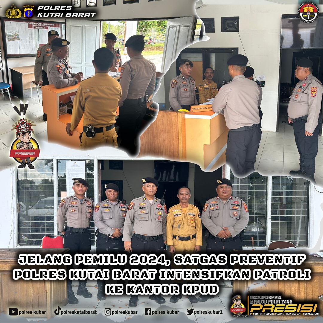 Jelang Pemilu 2024, Satgas Preventif Polres Kutai Barat Intensifkan Patroli ke Kantor KPUD
